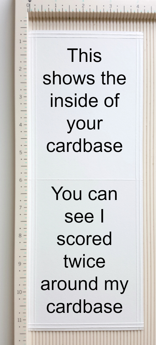 You have your card base cut (4.25" x 5.5") and the fold scored, laying the card base flat on your scoreboard you want to score all the way around the card base.