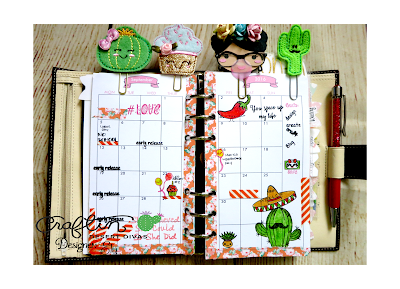 I just had the chance to make my monthly spread using my Personal Size Ring Planner, I decided to plan ahead with my New Stamp sets from Craftin Desert Diva's and give it a little touch of cuteness ...