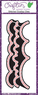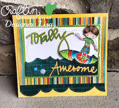 To create this card I cut out my top card base using the die. Even though it is subtle in this card I liked how it gave it a bit of detail around the edge. I used for my little Surfer and his rad surfboard. To create the waves I actually used the opposite side of the die so they would be facing in the direction he was surfing. I grabbed the opposite side from the cut and since I hate wasting things, I added it to the bottom edge of the card. CDD does carry a wave die in their die set but the water was facing the opposite direction then what I needed it to. Plus I love the double stitching on the Scallop dies, it gives it an extra little "POP"! Finally to make the card "TOTALLY AWESOME" I used the and cut it out in several layers so it stood out some.