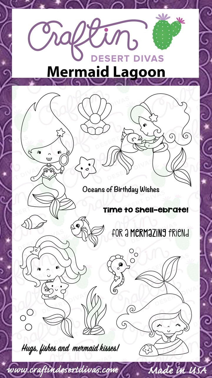 The adorable mermaid and the stars are colored using Spectrum Noir Alcohol markers and also added Nuvo Drops .