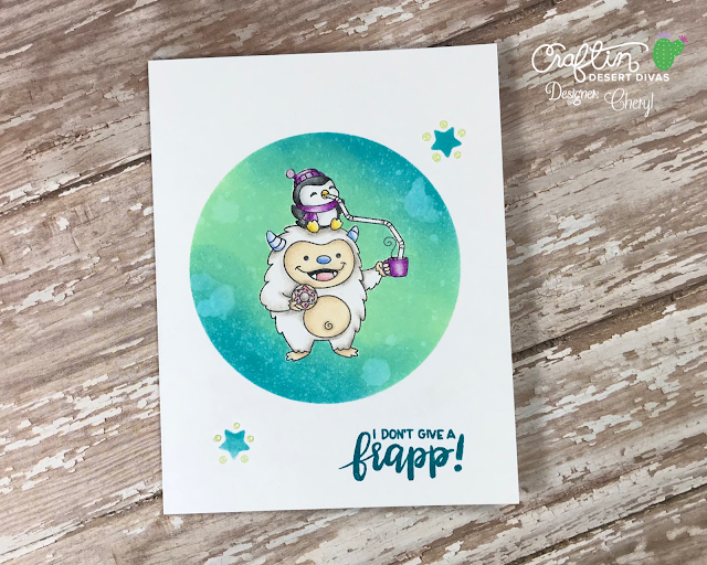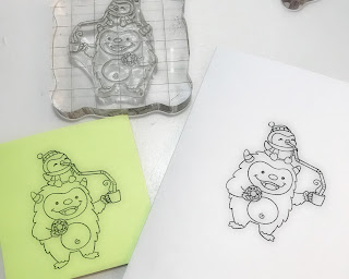 I colored the Yeti and the Penguin in with colored pencils and added some Key-Lime Nuvo Jewel drops and there you have it!