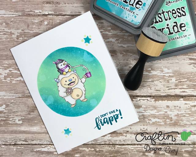 2) Using a foam blender, apply Cracked Pistachio Distress Oxide ink to the center of the image.