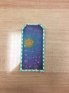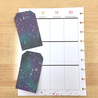 When I measured the tags to my planner page, they were much larger than I had originally planned. So, I decided to trim them down to 2 1/4" X 4". I trimmed all the tags except for the one with the star glow. This one I decided I would turn into a bookmark.