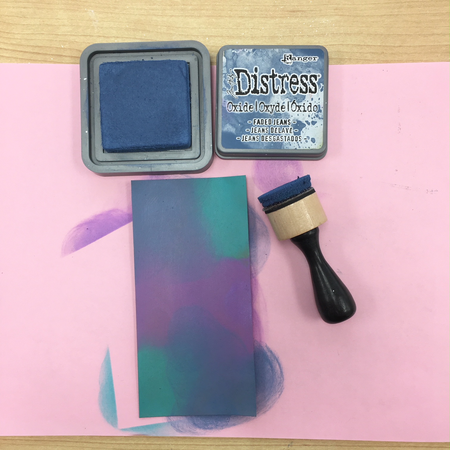 Next, I went about replicating the original tag but without the star glow. After the first tag in this series, I eliminated Faded Jeans from the process as Peacock Feathers and Wilted Violet blended together create a color almost the same as Faded Jeans.