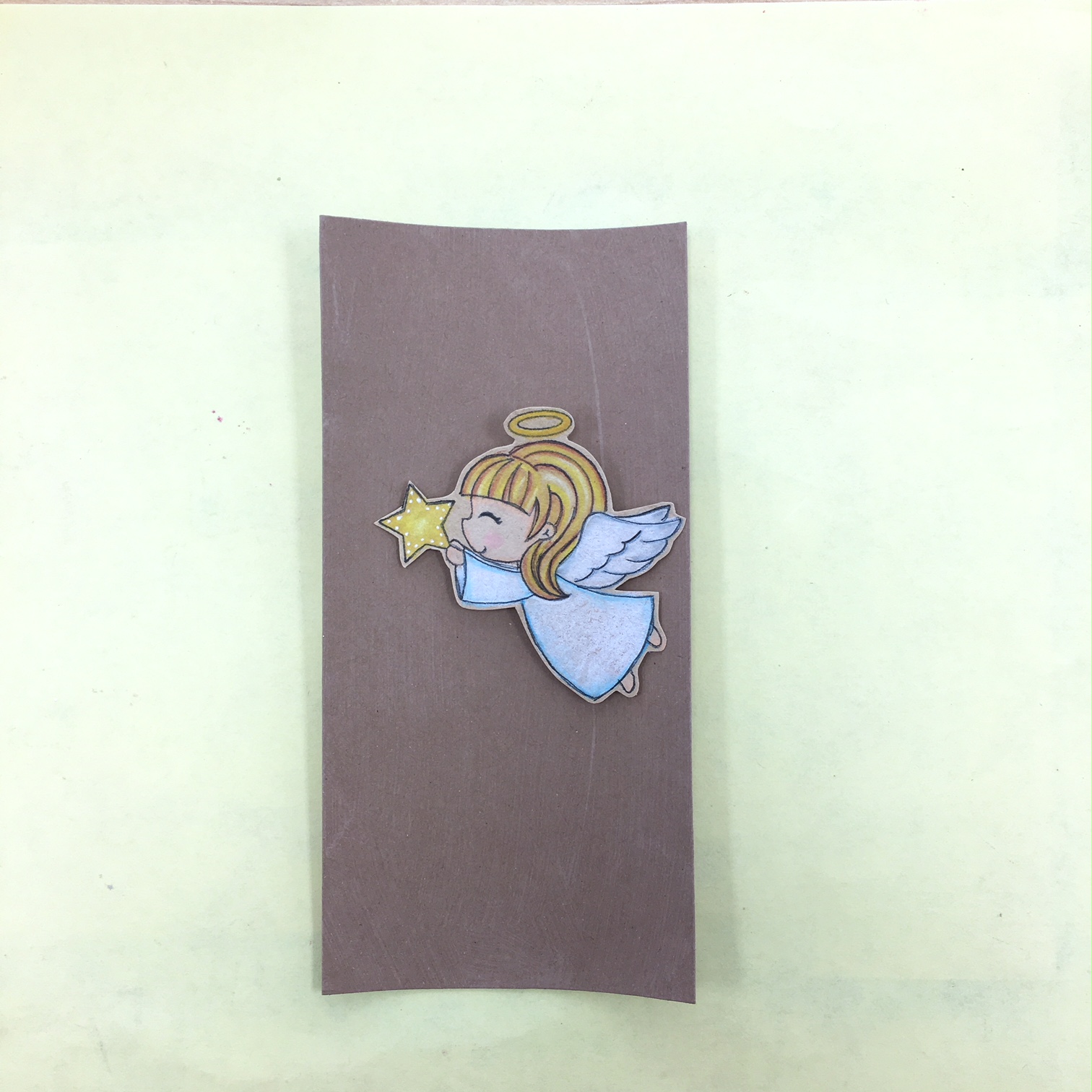 This little angel holding a star was the inspiration for the entire project. She is from the Angel Kisses set. I colored her on kraft sticker paper with Prismacolor pencils. She is one of the many images I used for this project that I colored weeks ago. Often when we are getting ready for CDD releases, I color a TON of images because I'm not yet sure exactly what I am going to do with them.