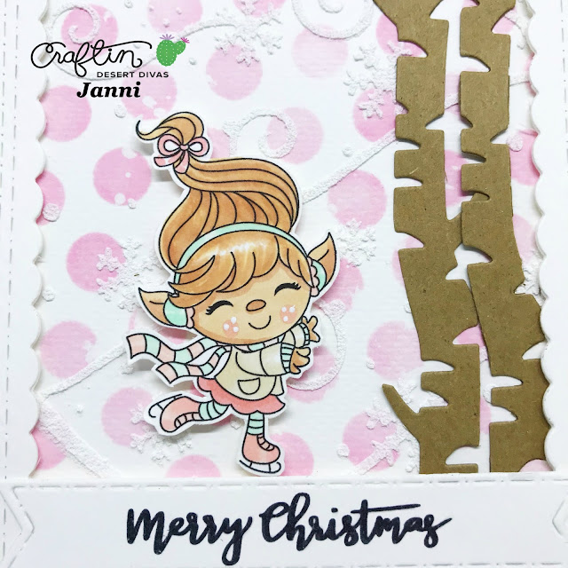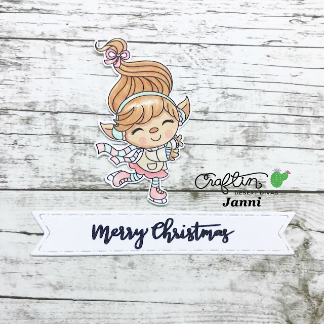 I colored up this little cutie on the ice from ’Snow Happy’ with my Copics, and off course I used my favorite pastel combo’s. The little sentiment is from ‘Oh what fun’ the size of that sentiment is just perfect for my christmas cards.