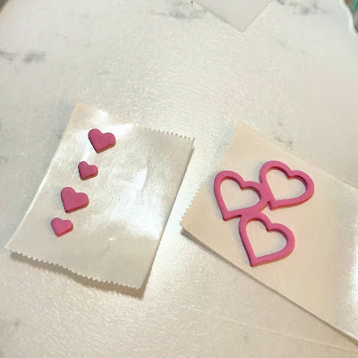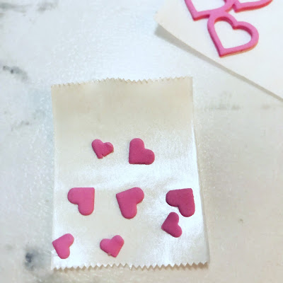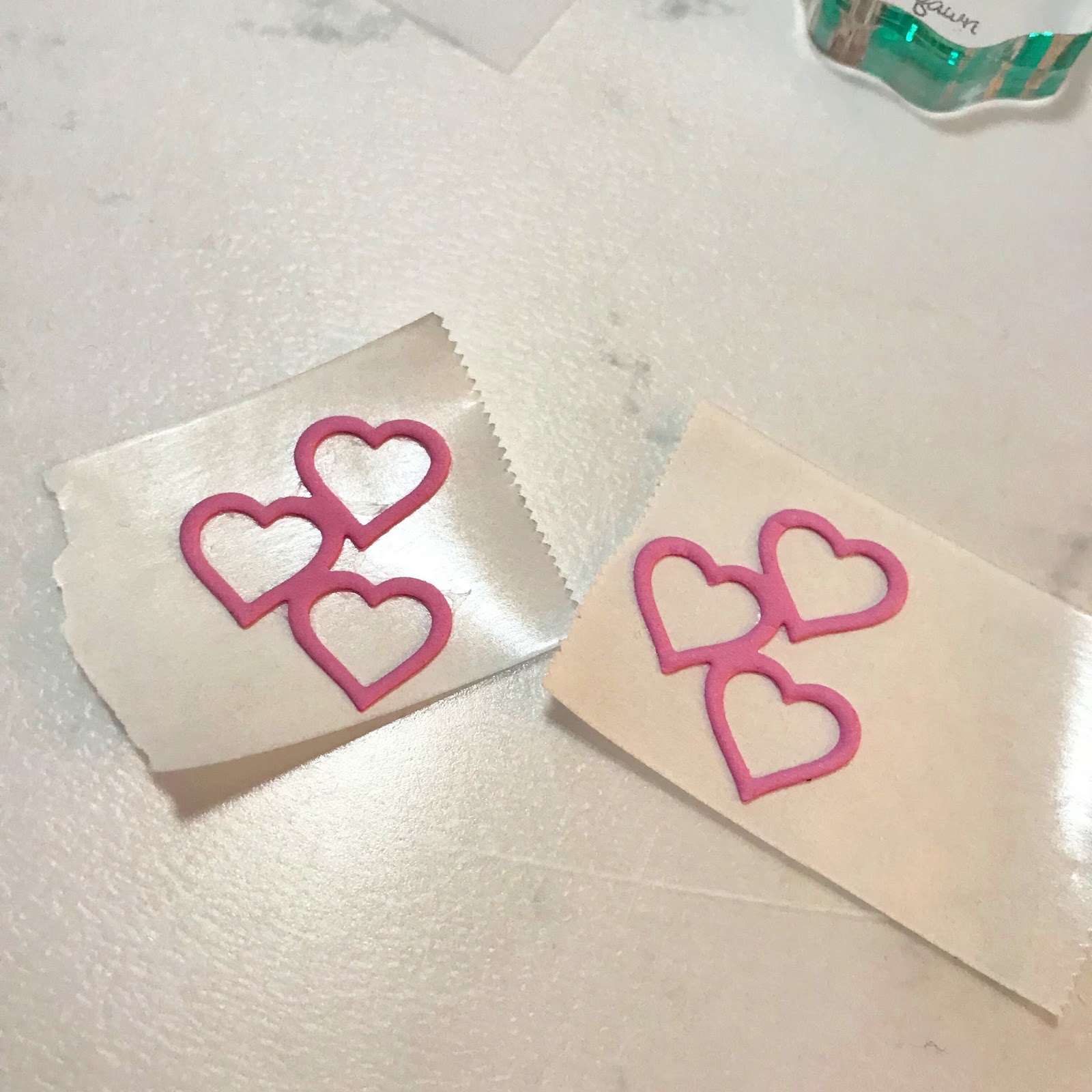 First I cut out two heart outlines from the , and ran it through my sticker maker. I did the same with the two smallest hearts from the , only cutting a total of eight hearts for the bullets.
