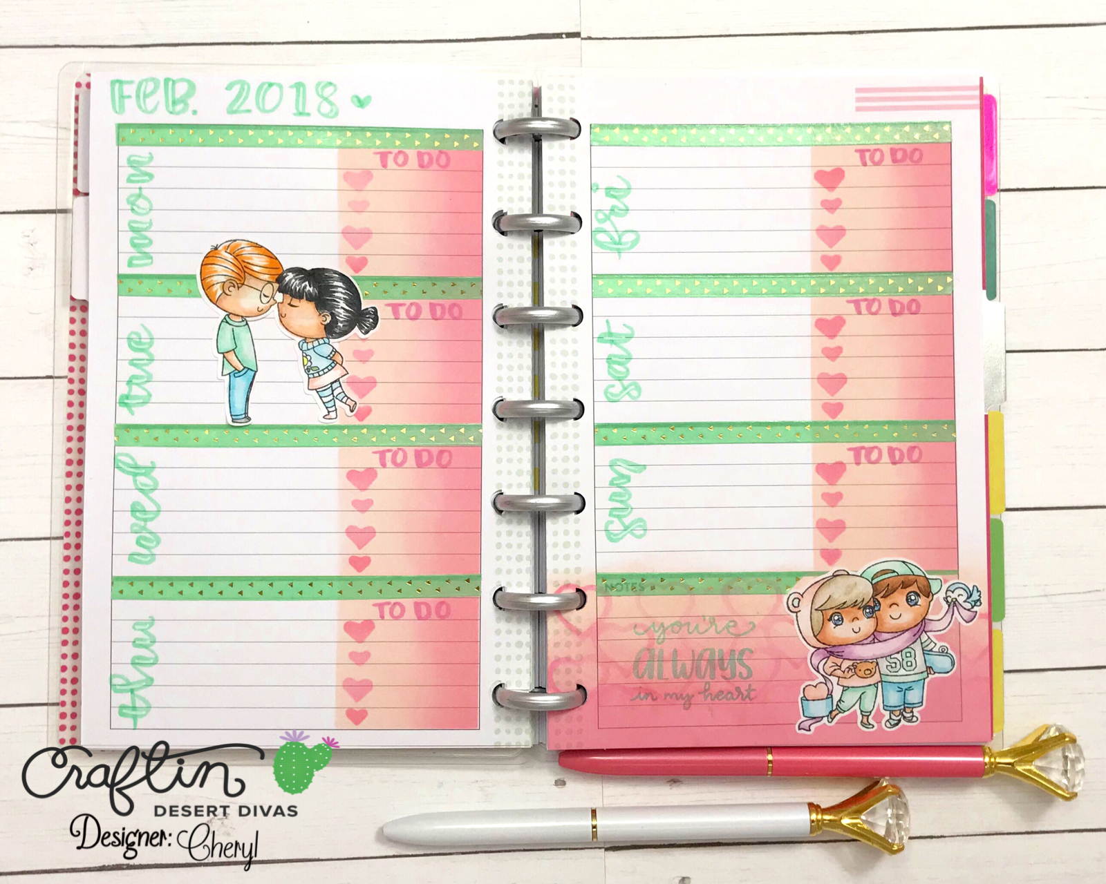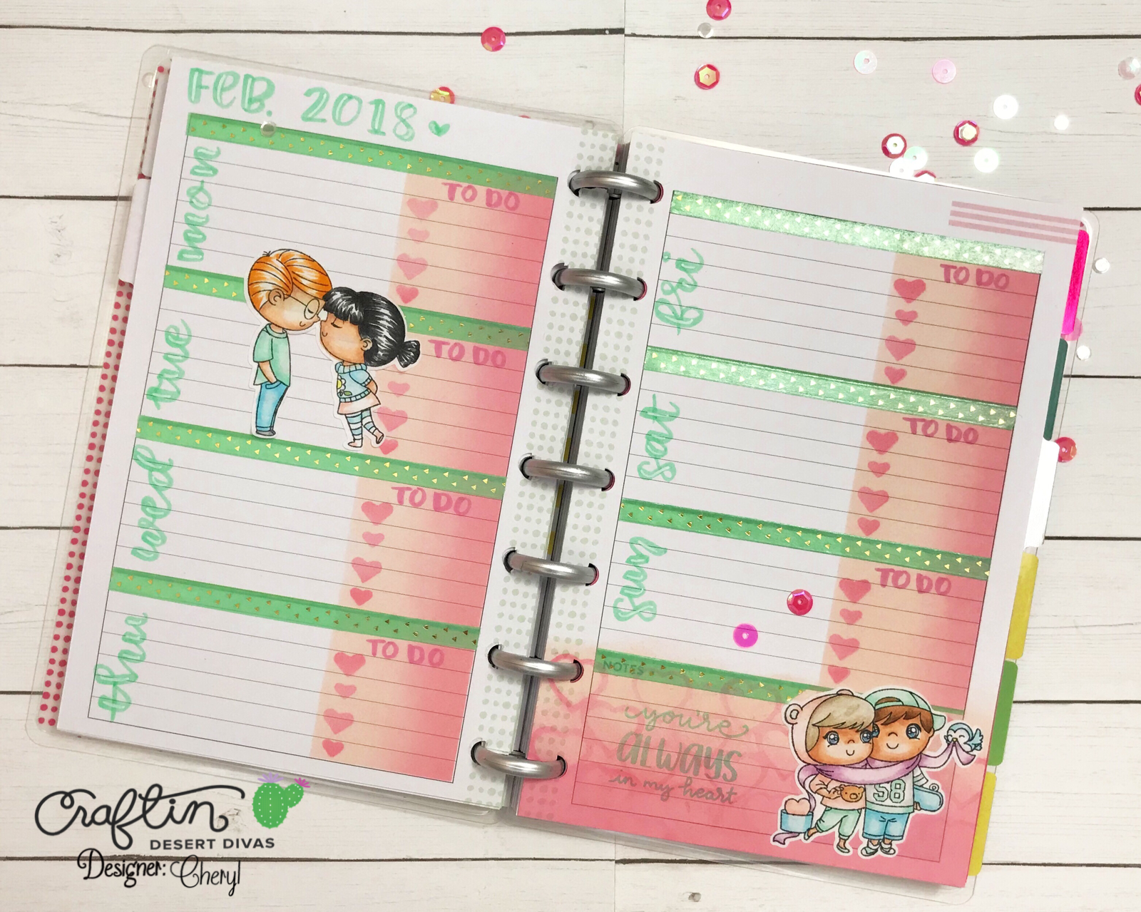 Next, I stamped the heart check lists, added some washi tape, and then added the stamped and colored images from the .
