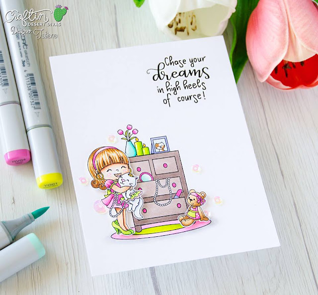 Hello and welcome! DT member Tatiana is here today from Tatiana Craft And Art with a daily post featuring brand new and sooooooo adorable stamp set from the Craftin Desert Divas April Release. All the products from the CDD April release will be available for purchase on Friday April, 13 at